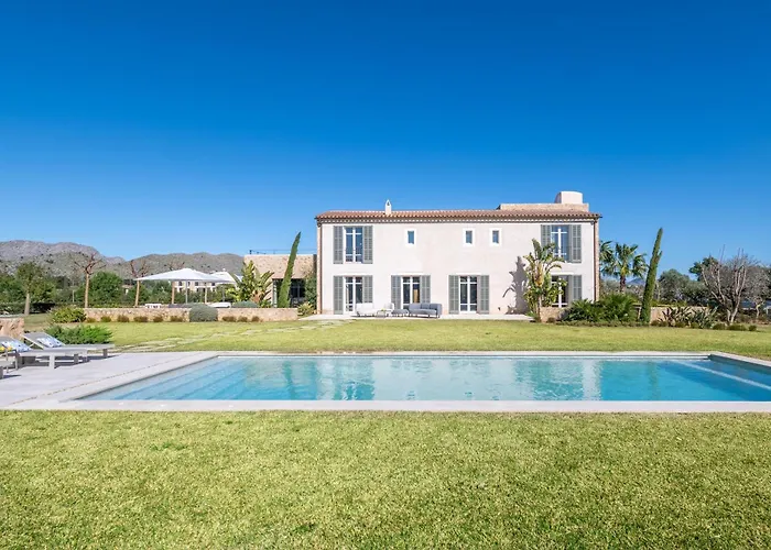 La villa Can Coral Pollensa, situada a 2 km de los 365 escalones del Calvari, cuenta con una terraza con vistas a las montañas.